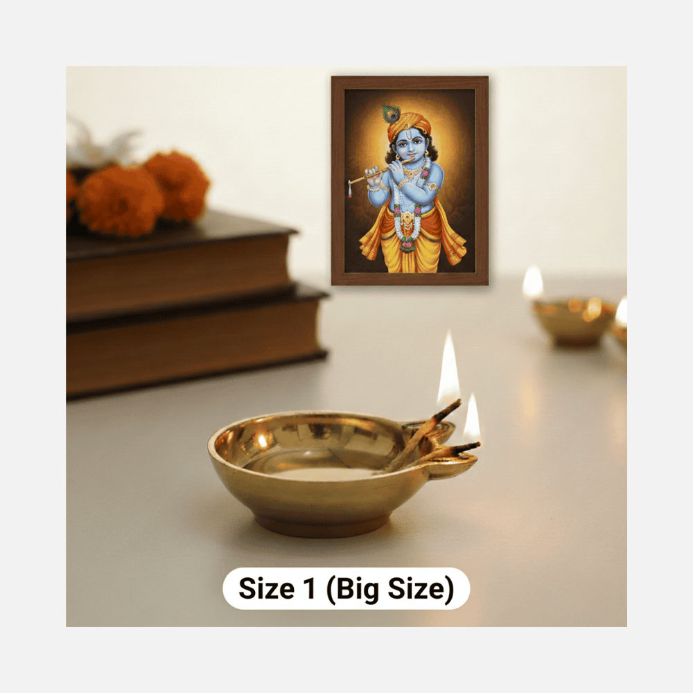 Light up your home with divine grace using the 2-Faced Brass Panati (Panti) Diya / Brass diya Size No.1 (Big Size) , a sacred oil lamp rooted in South Indian tradition. Designed to hold two flames, this diya symbolizes balance, protection, and the continuous presence of divine energy in your space. Crafted in pure brass, it is ideal for daily pooja, evening aarti, and auspicious festivals.