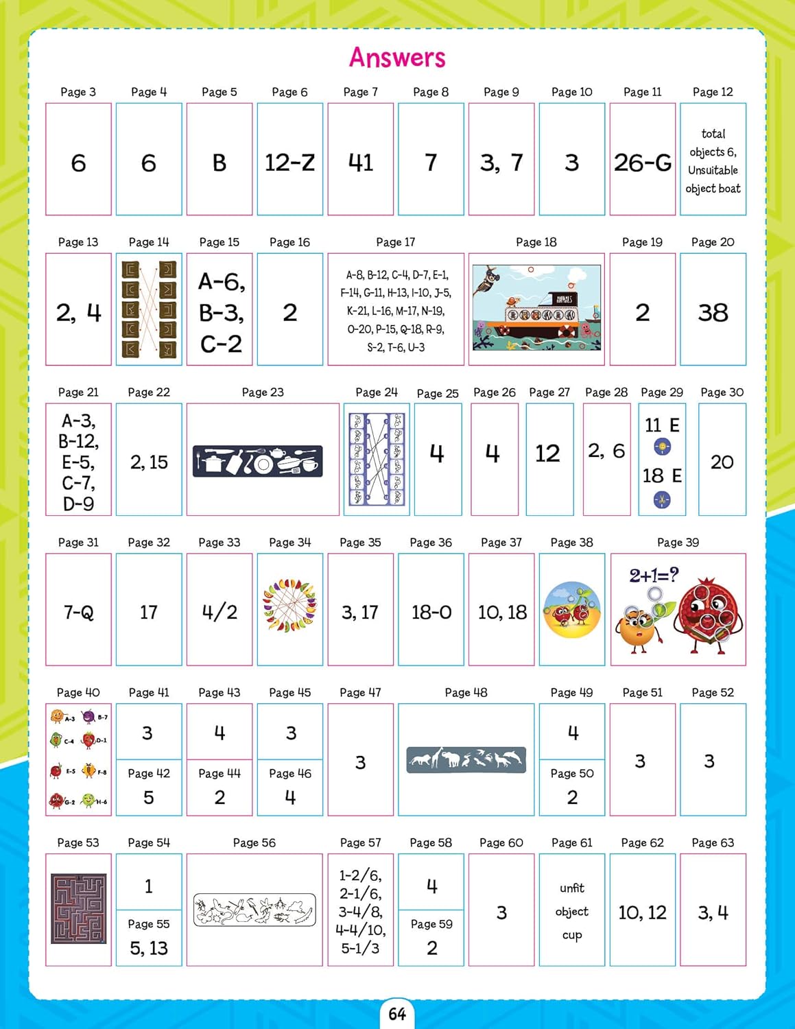 Sure to promote creativity, develop motor skills and improve concentration, this book provides kids chances to learn. It will help little ones build their brainpower as they remain focused on solving puzzles and mazes, finding differences, matching pairs, and more.