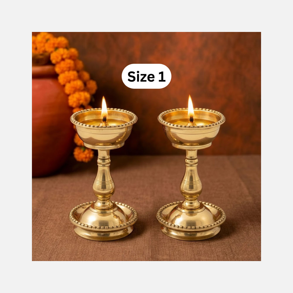 Lighting samai in pairs is traditionally believed to enhance spiritual harmony and auspiciousness, making this set ideal for daily aarti, temple rituals, and festive occasions. Their compact yet graceful design and radiant brass finish add sanctity and timeless elegance to every sacred space.