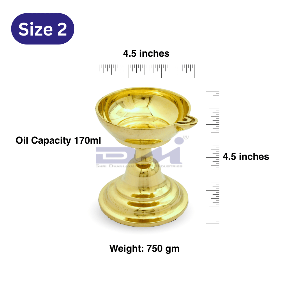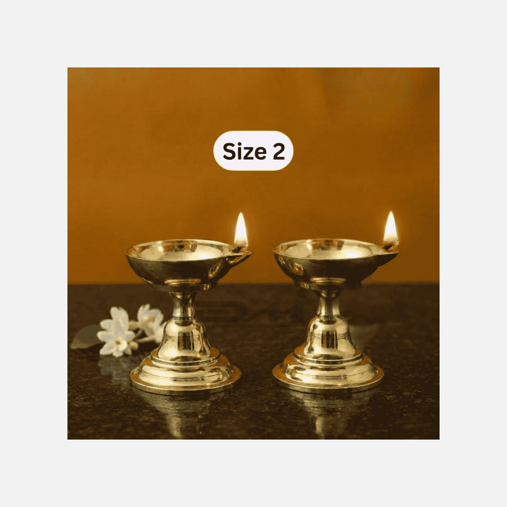Designed for symmetry and sacred balance, the Dasara Panti Single with Stand (750gm) – Pair Size No.2 enhances rituals where dual illumination holds spiritual significance. Crafted in pure brass, this traditional set of two oil lamps creates a harmonious glow, elevating pooja spaces with serenity, stability, and devotional grace.