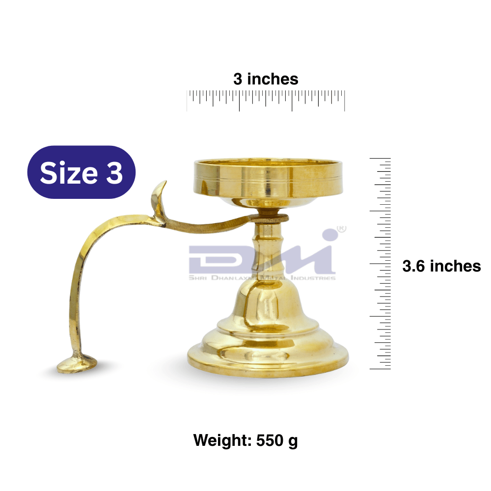 Illuminate sacred rituals with the DMI Brass Alang Dhuparti Size No.3, a traditional dual-purpose lamp designed to offer both dhoop and diya in one elegant structure. Crafted from premium brass, this diya brings together light and fragrance to create a calm, spiritually uplifting atmosphere during worship.