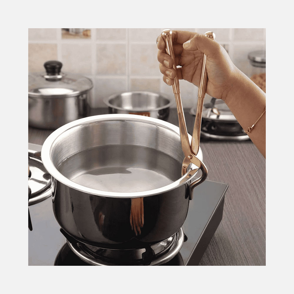 Ensure safe handling of hot cookware with the DMI Brass Vessel Sanchi, a classic brass kitchen gripper designed for comfort, control, and durability. Crafted from solid brass, this sanchi provides a firm grip on hot lids, vessels, and pans while remaining cool to touch during use.