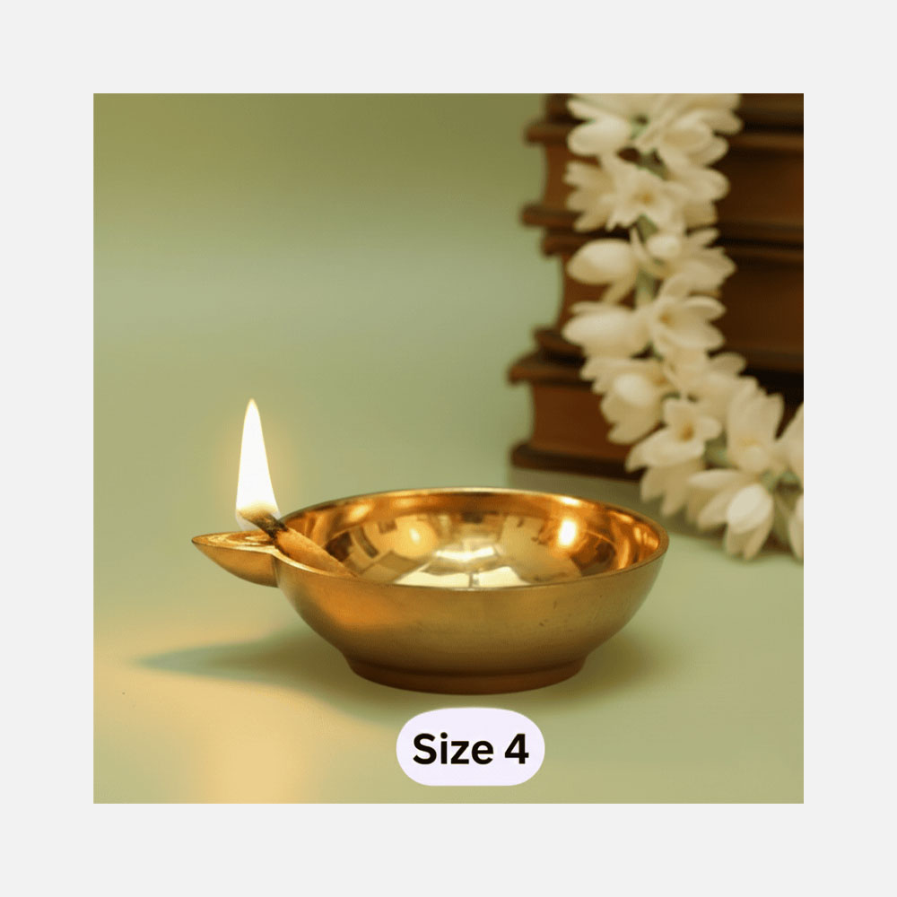 The DMI One-Faced Brass Dasara Panti / Brass Diya Size No.4 is a traditional oil diya crafted for focused and intentional puja lighting. Designed with a deep single cavity and an elegant antique brass finish, this diya reflects simplicity, devotion, and timeless ritual aesthetics.