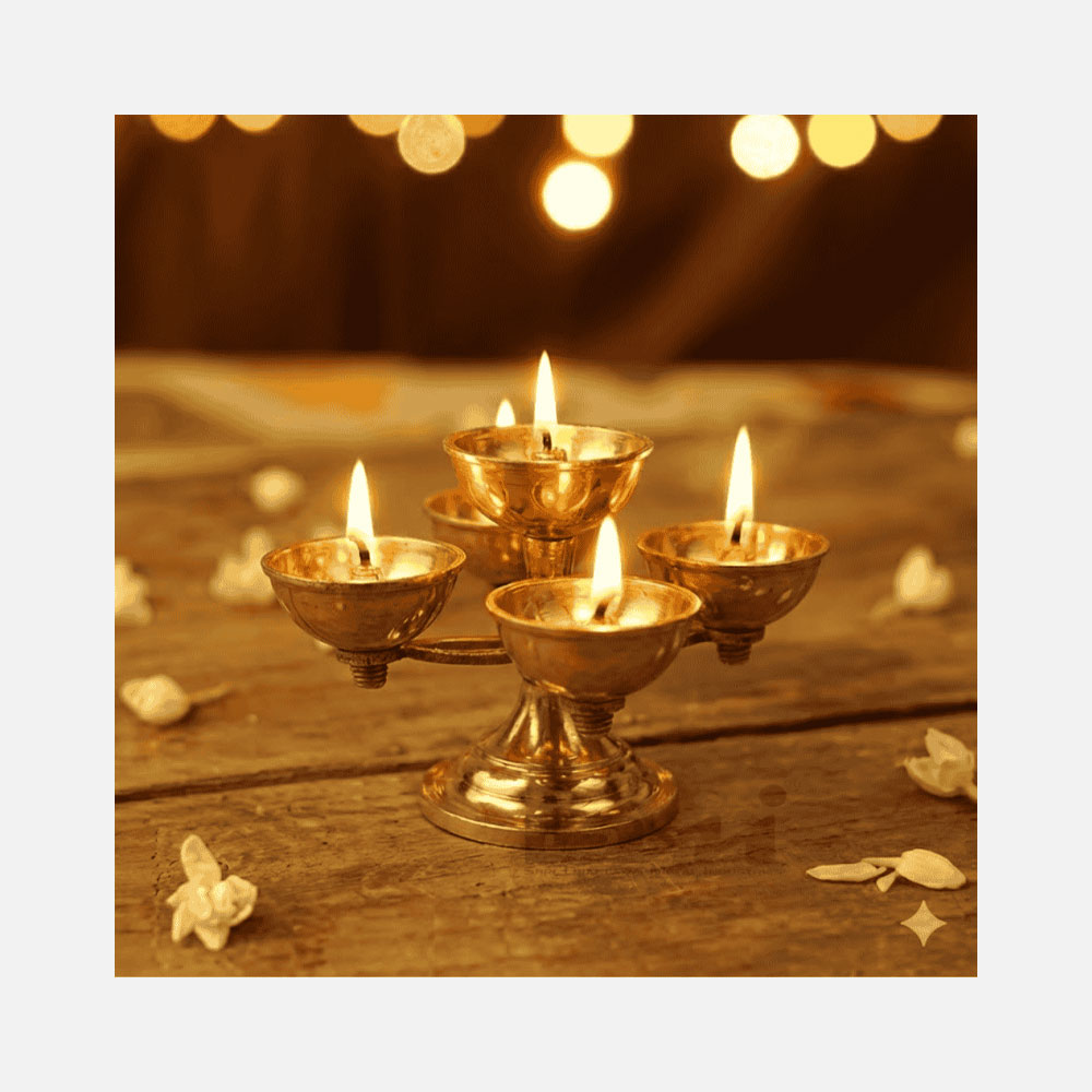 Inspired by traditional temple lamps, the Panchadeep is widely used during Diwali, Navratri, and Shivaratri, making it an essential element in both home mandirs and temples.