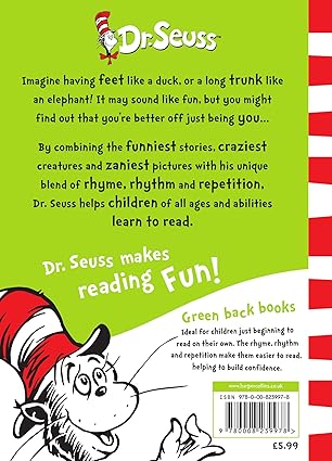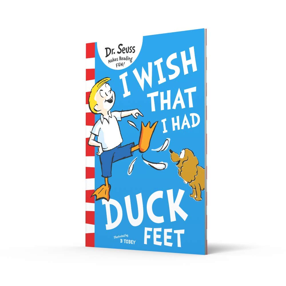 As part of a major rebrand programme, HarperCollins is relaunching Dr. Seuss’s bestselling books, including such perennial favourites as The Cat in the Hat, Green Eggs and Ham and Fox in Socks. In response to consumer demand, the bright new cover designs incorporate much needed guidance on reading levels, with the standard paperbacks divided into three reading strands – Blue Back Books for parents to share with young children, Green Back Books for budding readers to tackle on their own and Yellow Back Books for older, more fluent readers to enjoy. ‘I Wish That I Had Duck Feet’ belongs