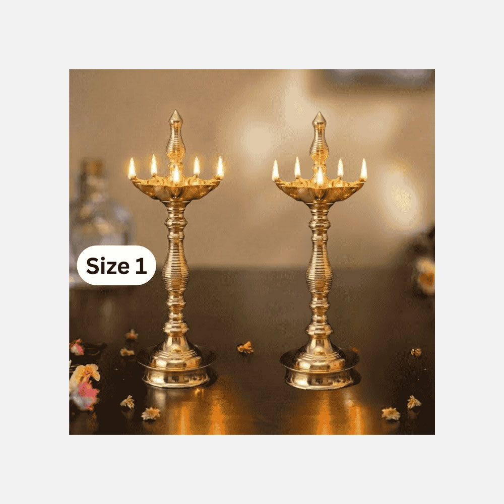 Elevate sacred rituals and spiritual offerings with Size No.1 DMI’s 7 Faced Ethnic Brass Samai Kalas/Kalash Design & Lined Patten Stand Pair. This divine set of two traditional Samais is crafted to radiate auspicious energy, making it ideal for temple donations, festive aartis, and daily pooja lighting.