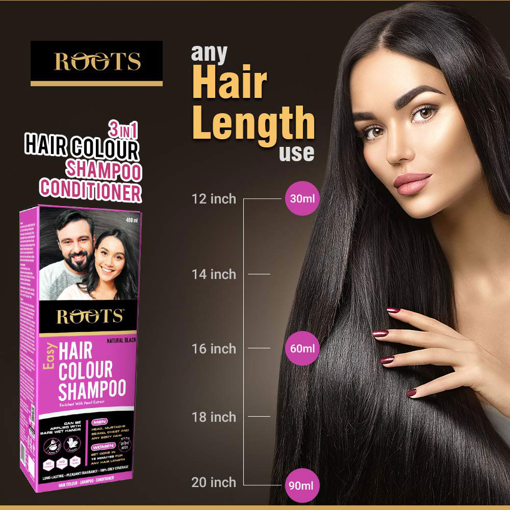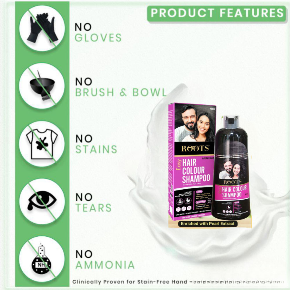 Transform your hair coloring routine with Roots Easy Hair Colour! This innovative product combines shampoo, color, and conditioner into one convenient formula, making it a breeze to achieve your desired look. With its easy application process, you can say goodbye to gloves and messy staining on your skin or hands.